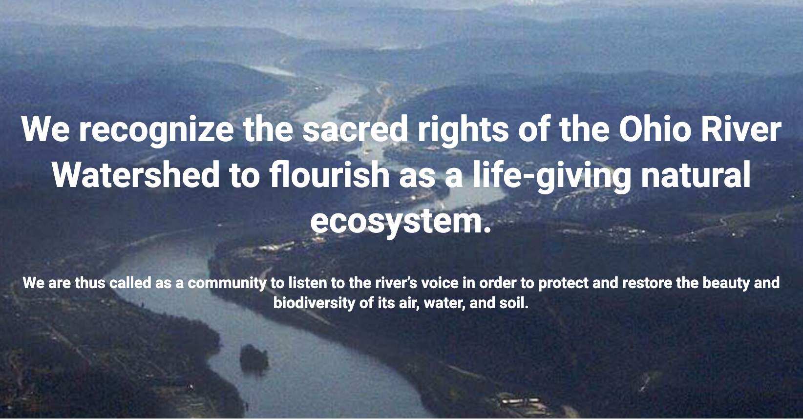 We recognize the sacred rights of the Ohio River Watershed to flourish as a life-giving natural ecosystem.